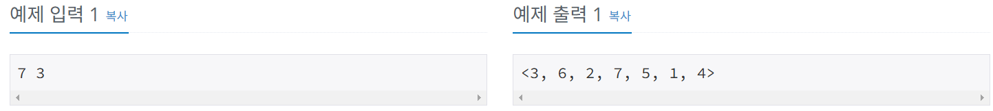 위의 예제로 이해를 해보면, 7명 중 3번째 사람을 계속 제거한다.